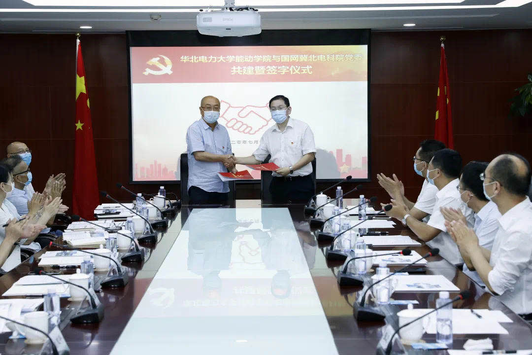 委员会与中共国网冀北电力有限公司电力科学研究院(华北电力科学研究院有限责任公司)委员会开展党委共建活动。电科院院长杜维柱,党委书记王学志,副院长刘建华、草榴