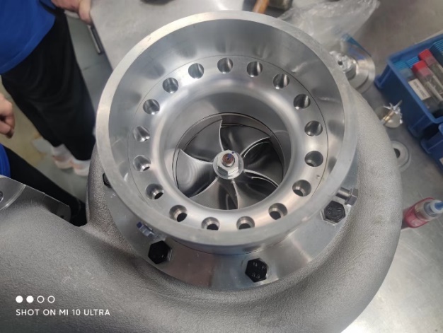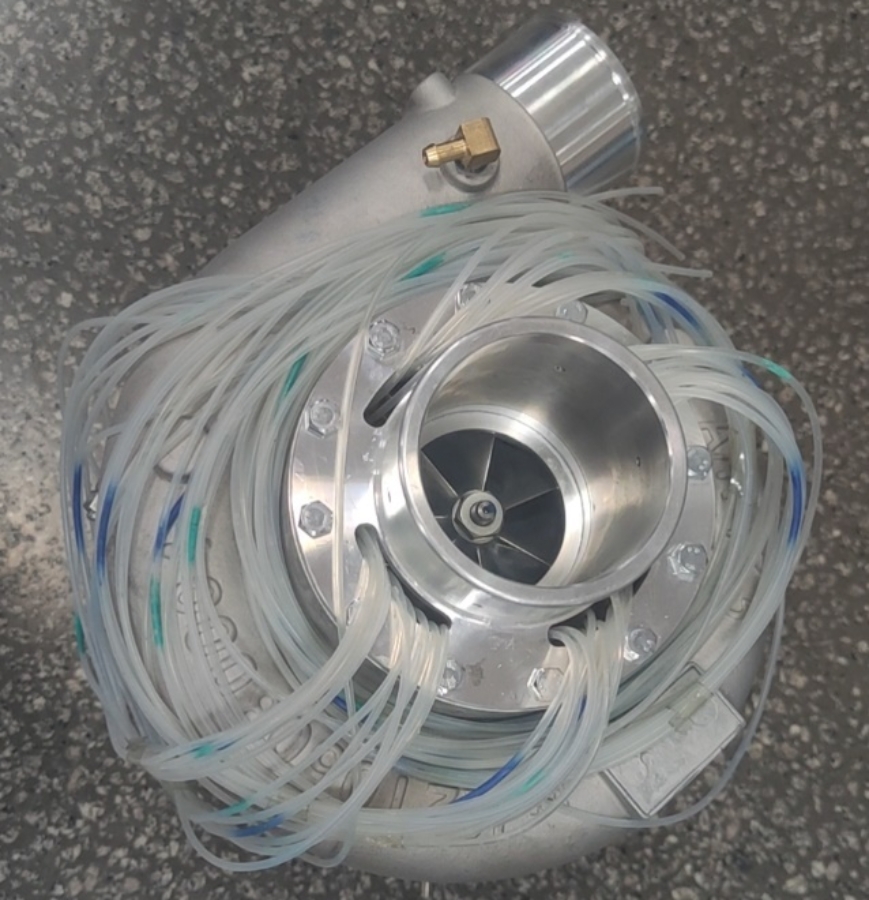 (a)带有变几何节流环拓稳装置的离心压气机物理样机(采用全新拓稳原理)