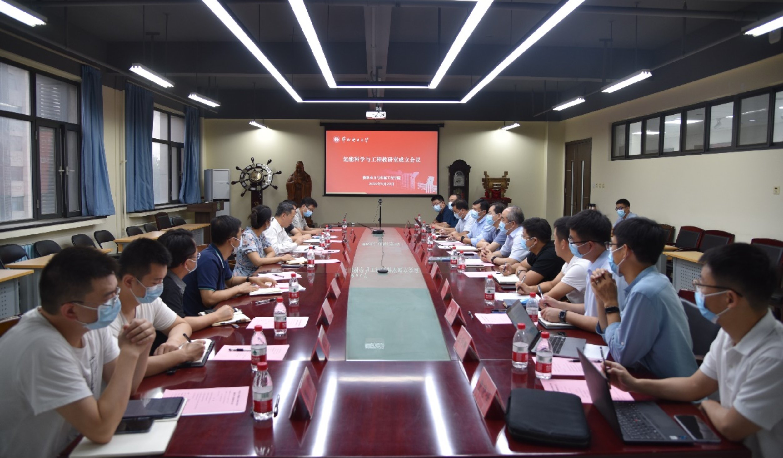 会议宣布氢能科学与工程教研室正式成立,并任命刘建国教授为氢能科学与工程教研室主任。杨勇平和刘建国共同为氢能科学与工程教研室揭牌。