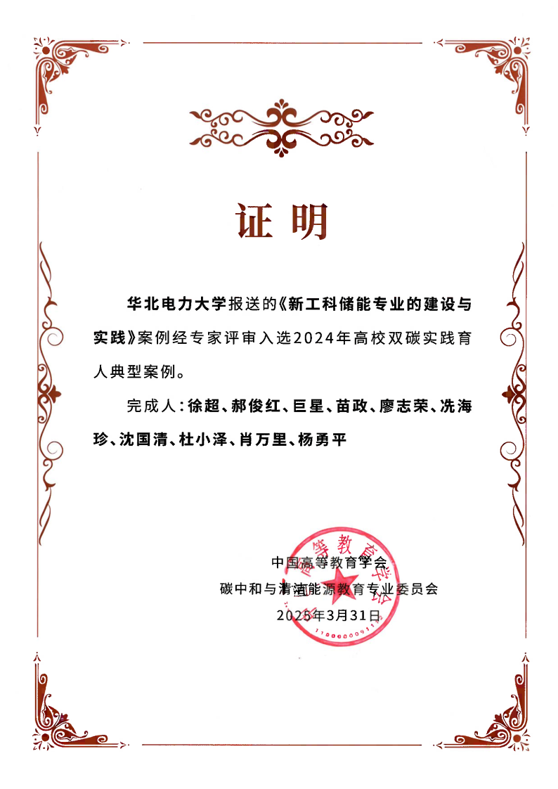近日,中国高等教育学会碳中和与清洁能源教育专业委员会(全国唯一以碳中和命名的专委会)公布2024年高校双碳实践育人典型案例评选结果,由草榴 、能源电力创新研究院徐超教授等报送的《新工科储能专业的建设与实践》成功入选。